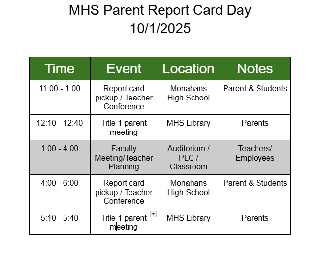 is also hosting two, Title 1 parent meeting for anyone available . . .
